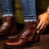 Botines para hombre Fazio Negro fabricados en cueros premium 100% garantizados, no manejamos ningún tipo de material sintético, cuentan con cierre lateral metálico funcional, cordones encerados, suela antideslizante, plantilla confort tipo memory foam, forro interno antifricción.