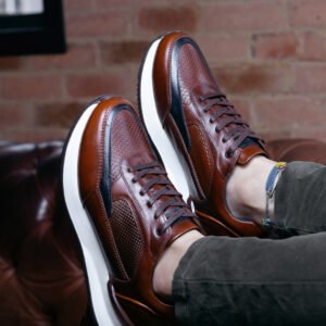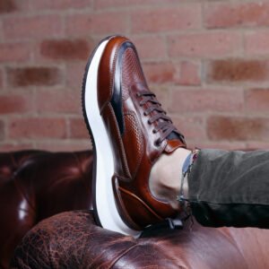 Botines para hombre FRANCO CAOBA fabricados en cueros premium 100% garantizados, no manejamos ningún tipo de material sintético, cuentan con cierre lateral metálico funcional, cordones encerados, suela antideslizante, plantilla confort tipo memory foam, forro interno antifricción.