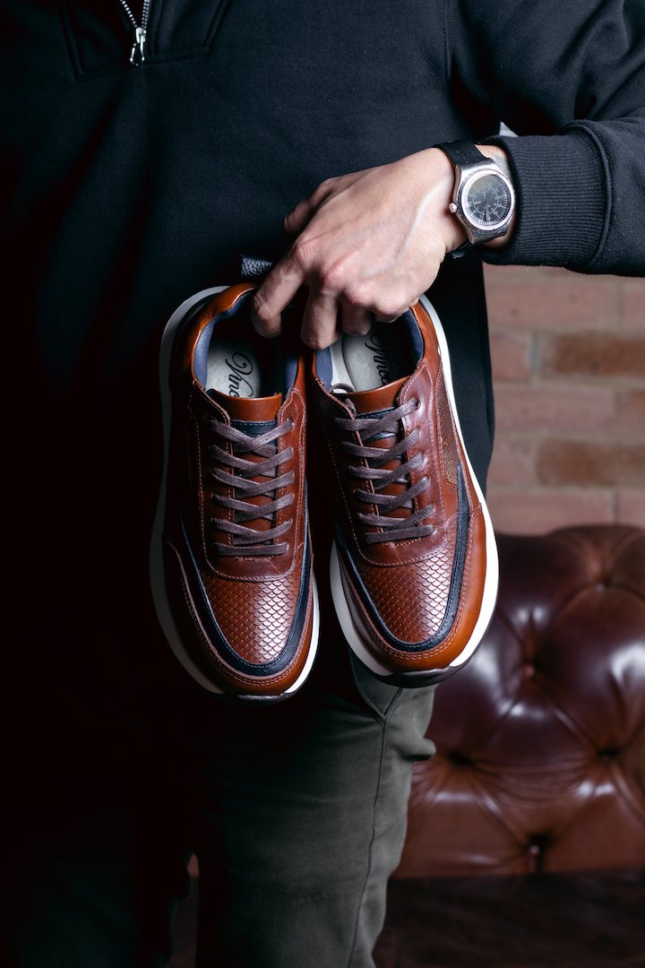 Botines en cuero para hombre Vicenzo Rombos Negro, hechos a mano en colombia, fabricados en cuero 100% garantizado, no usamos ningún tipo de material sintético.