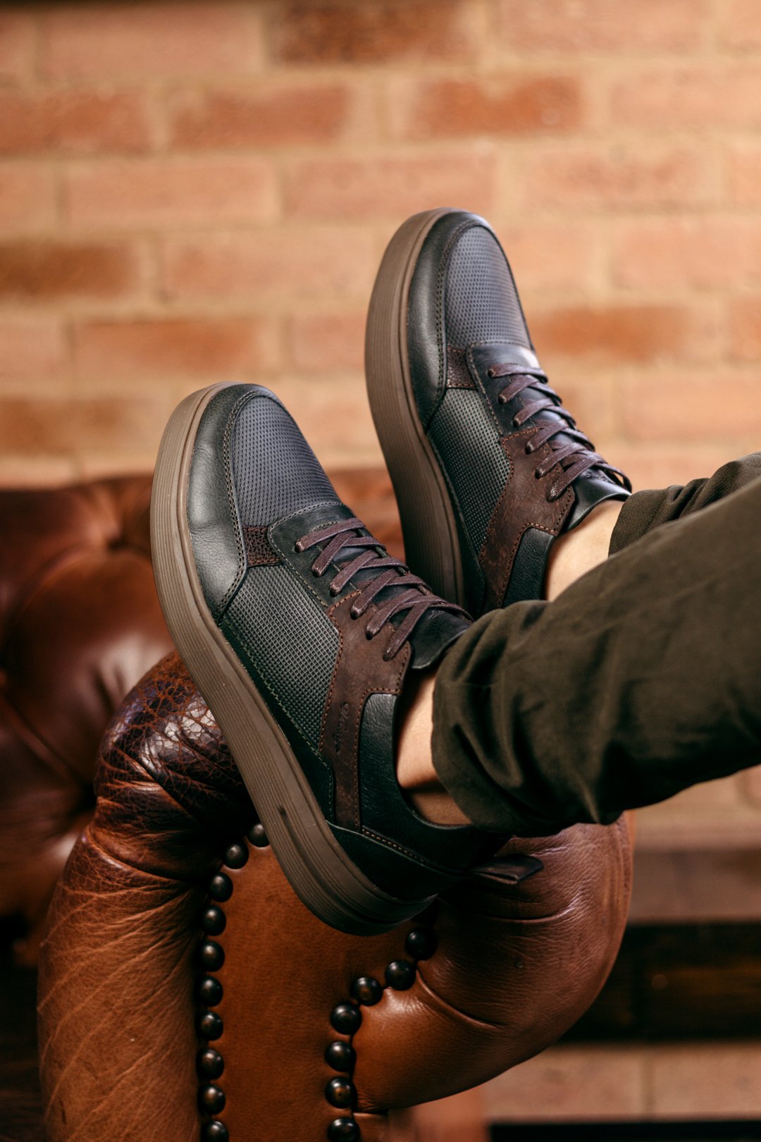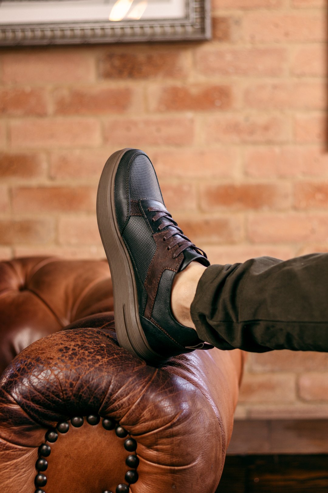 Botines en cuero para hombre Vicenzo Rombos Negro, hechos a mano en colombia, fabricados en cuero 100% garantizado, no usamos ningún tipo de material sintético.